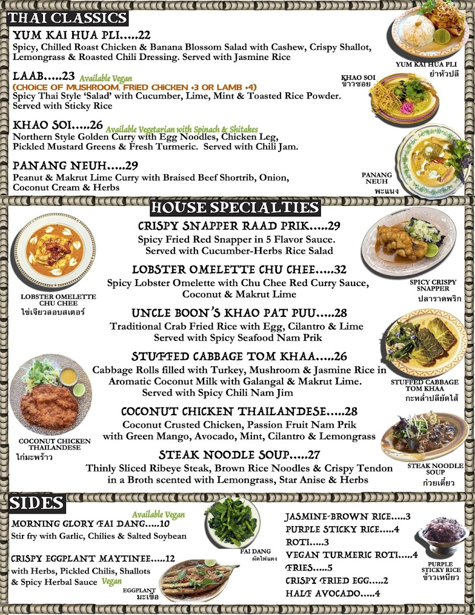 Thai Diner is a vibrant culinary gem that reimagines traditional Thai fare with a delightful fusion twist. Nestled in the Lower East Side, it boasts a funky, woodsy design that enhances the dining experience, making guests feel instantly at home. The menu features inventive dishes like the celebrated Green Papaya Salad and the flavorful Kai Soi, a baked egg dish rich with Khao Soi curry. Diners rave about the unique combinations and the accommodating staff, creating an inviting atmosphere perfect for both casual meals and special gatherings. Thai Diner promises not just a meal but an unforgettable gastronomic adventure.